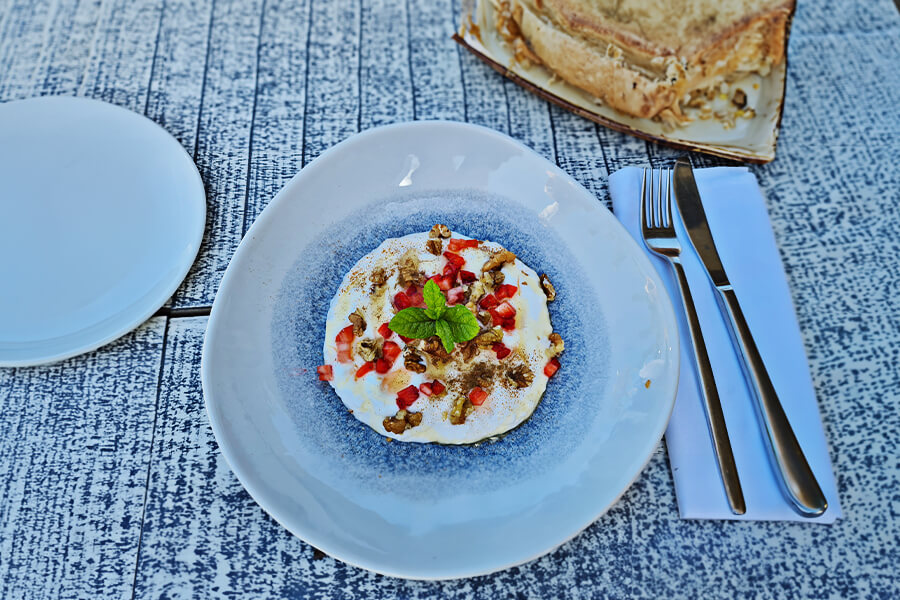 Für die Süßmäuler unter uns bietet Chalkidiki ebenfalls eine Vielfalt an süßen Leckereien. So solltest du unbedingt die Bougatsa probieren, ein traditionelles Gebäck mit Vanillecreme und Blätterteig, oder das unvergesslich leckere Eis-Dessert Armenonville mit heißer Schokolade! Auf keinen Fall solltest du es versäumen, zum Frühstück, als Snack oder Nachtisch den göttlichen griechischen Joghurt mit einheimischem Honig zu probieren – einfach köstlich!