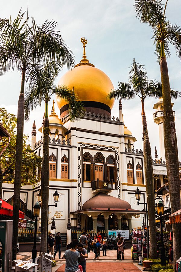 Die Sultan-Moschee, mit ihrer majestätischen goldenen Kuppel, ist ein unverkennbarer Anblick in Kampong Glam und ein eindrucksvolles Beispiel für islamische Architektur. Nicht verpassen solltest du die Haji Lane: eine schmale Gasse voller unabhängiger Designerläden und Boutiquen, Cafés, Bars, Restaurants und Wandmalereien.
