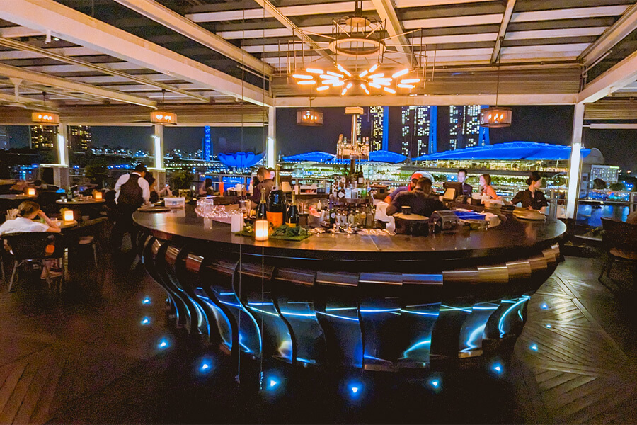 Eine dieser beliebtesten Rooftop-Bars ist das CÉ LA VI Singapore auf den Dach des Marina Bay Sands Hotels auf rund 200m Höhe. Diese exklusive Location besticht durch ihren atemberaubenden Blick auf die malerische Marina Bay.
