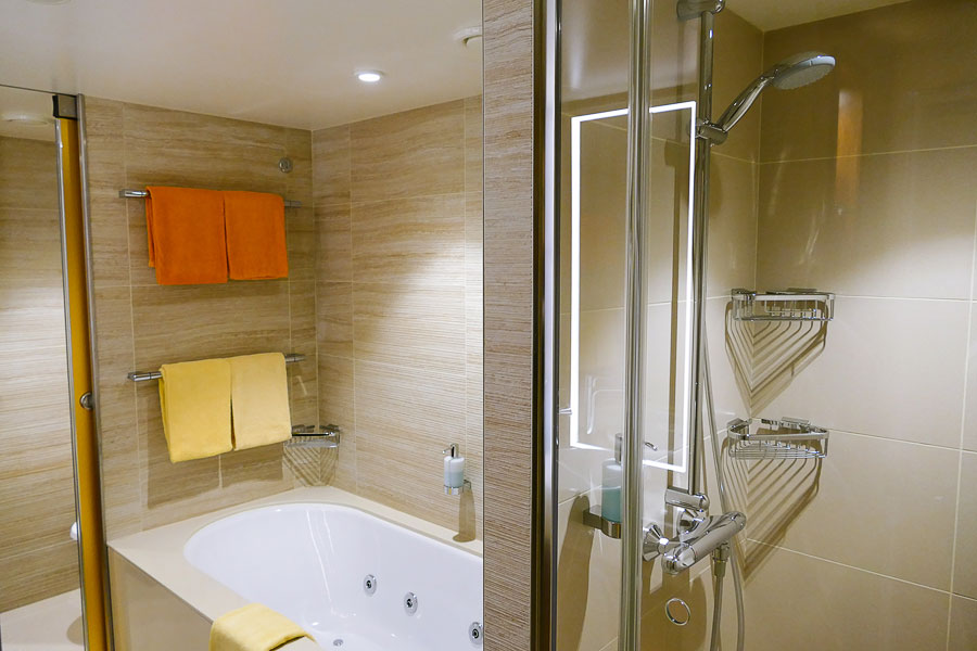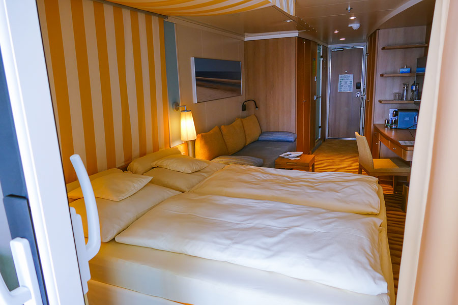 Diese Kategorie befindet sich in der Regel auf dem Lanaideck, was bedeuten kann, dass einige Kabinen in einer unruhigeren Umgebung sind oder vorübergehenden Gästen Einblicke ermöglichen. Ehrlich gesagt hat uns diese Kategorie nicht so gut gefallen – insbesondere im Vergleich zu einer „richtigen Juniorsuite“ sind die Unterschiede unserer Meinung nach erheblich. Wenn du eine Premium-Buchung vornimmst, kannst du bewusst einen der beiden Kabinentypen wählen. Bei einer Vario-Buchung hingegen kann es durchaus sein, dass dir bei der Zuweisung einer Juniorsuite nicht die großzügige Variante mit 12–16 m² Veranda zugewiesen wird, sondern die Juniorsuite mit Lounge, die eher an eine normale Balkonkabine erinnert. Je nachdem, was dir also wichtig ist, solltest du dies berücksichtigen, damit du bei der Kabinenzuweisung keine unangenehme Überraschung erlebst, die deine Urlaubs- und Kreuzfahrtfreude trübt.