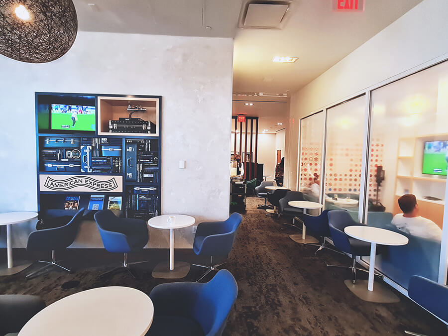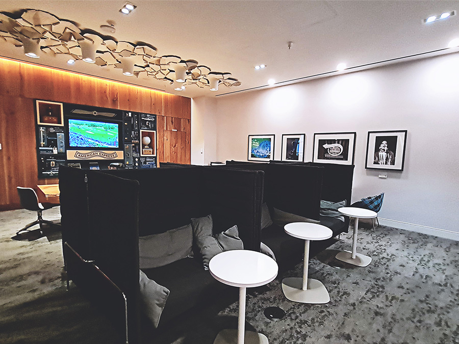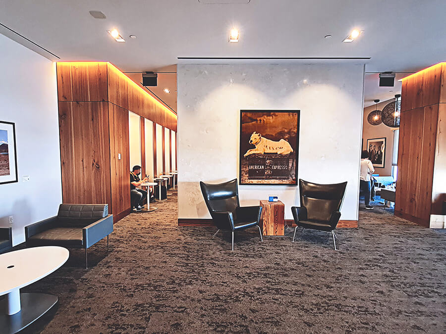 Im Arbeitsbereich finden sich zwei abgetrennte Räume, die nur für ausgewählte Gäste zugänglich sind – vermutlich Kreditkarteninhaber mit hohem Centurion-Status.