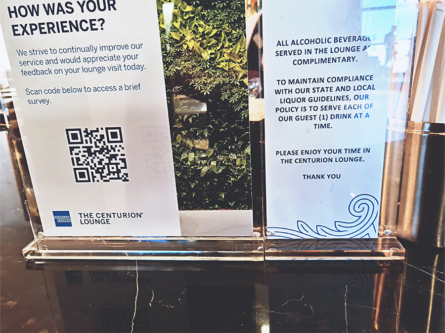 Wie eingangs erwähnt hatte ich sehr hohe Erwartungen an die Centurion Lounge, die großteils erfüllt wurden. Schade war, dass es keinen freien gemütlicheren Sitzplatz gab, da diese entweder besetzt oder mit RESERVED gekennzeichnet waren. Auch wenn das Essen lecker und die Auswahl ordentlich war, muss ich hier ein paar Punkte Abzug geben. Andere Lounges bieten dann doch mehr Auswahl und Vielfalt.