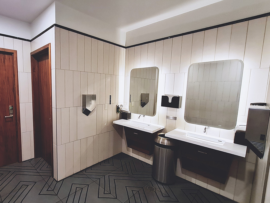 Hinter dem Buffetbereich finden sich die sanitären Einrichtungen, die einen ordentlichen Eindruck gemacht haben. Dort gab es die lecker duftende Lotion von L’Occitane.