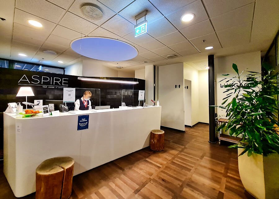 Die Aspire Lounge befindet sich in Terminal 2 im Abflugbereich A (Schengen) auf der oberen Ebene (nur über Treppe erreichbar).