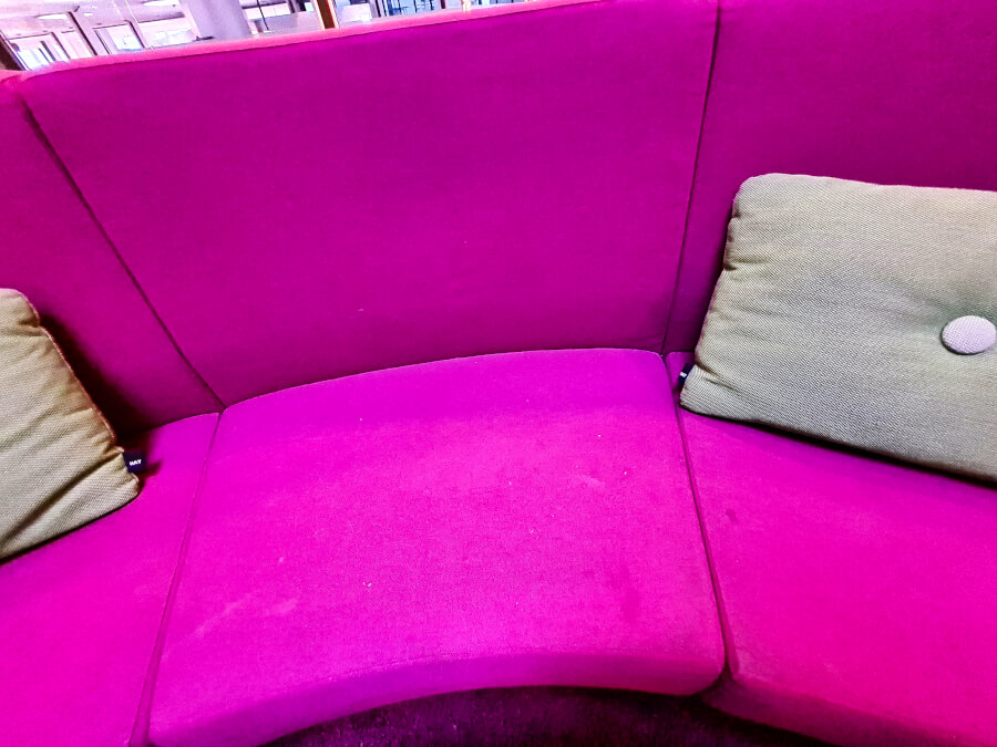 Große Sofarondelle wirken im ersten Moment sehr einladend, könnten jedoch eine Polsterreinigung vertragen.