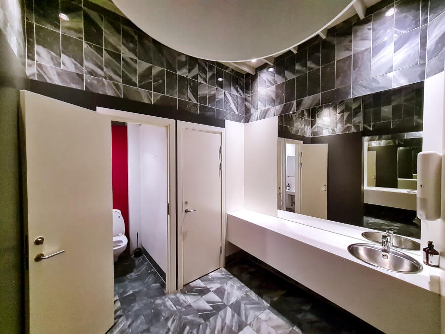 Die sanitären Anlagen sind überschaubar und eher schlicht gehalten. Es gibt lediglich jeweils einen Waschraum mit zwei Toilettenkabinen. Sie waren sauber, verfügten aber lediglich über Seife. Keine Bodylotion oder andere Kosmetik-/Hygieneartikel. Duschen sind ebenfalls nicht vorhanden.