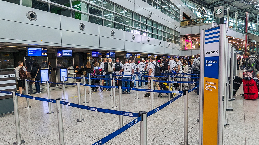 Da wir nur einen kurzen Aufenthalt auf Mallorca geplant hatten, reisten wir mit Handgepäck und checkten vorab online ein. Trotzdem waren wir neugierig auf die Situation am Check-in-Schalter, also gingen wir zuerst dorthin. Während die Economy-Schlange immer länger wurde, wartete am Business-Class-Schalter nur ein Paar.