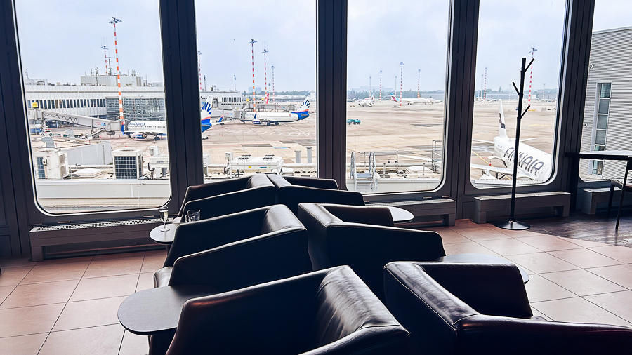 Condor hat keine eigenen Lounges, aber Business Class-Gäste können die Open Sky Lounge (Terminal C) oder die Hugo Junkers Lounge in Terminal B nutzen. Wir entschieden uns für die Hugo Junkers Lounge, da unser Flug in Terminal B startete und wir in dieser Lounge schon gute Erfahrungen gemacht hatten. Die Lounge ist solide und bietet vielfältige Sitzmöglichkeiten über zwei Etagen, teils mit Blick auf das Vorfeld. Hier finden sich komfortable Plätze, eine gute Essensauswahl und diverse Getränke. Ein idealer Ort, um die Zeit vor dem Flug entspannt zu verbringen. Hier hat man auch Zugang mit dem Priority Pass.