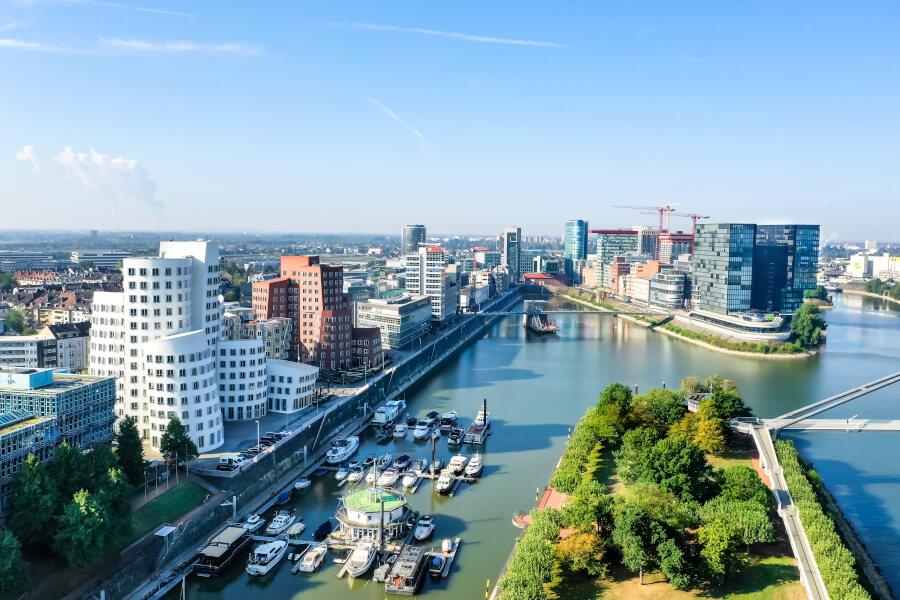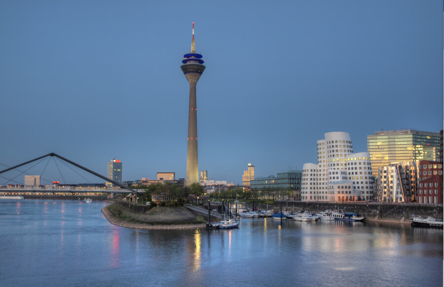 Aber auch die Düsseldorfer Altstadt mit vielen Restaurant- und Ausgehmöglichkeiten und dem Carlsplatz ist gut erreichbar: Ein 30minütiger Spaziergang dorthin führt euch vorbei an den Gehry-Bauten, dem Rheinturm, entlang der Rheinuferpromenade und den Kasematten.