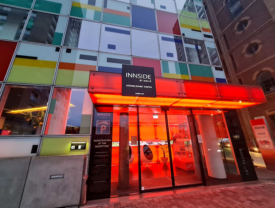 Mitten im Düsseldorfer Medienhafen findet sich das farbenprächtige, 62 Meter hohe und 17geschossige „Colorium“, in dem großteils das Hotel Innside Düsseldorf Hafen beheimatet ist. Das auffällige 4-Sterne-Stadthotel mit knallrotem Dach verfügt über 134 Zimmer und Suiten, ein Restaurant mit Bar und Loungebereich, sowie einer kleinen Fitness- & Relaxzone.