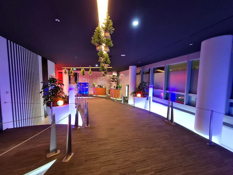 Auf mich wirkte alles nicht sehr einladend, sondern eher wie eine Durchgangsstraße und auch die Deckendekoration mit kleinen Tannen fand ich nicht so gelungen.
