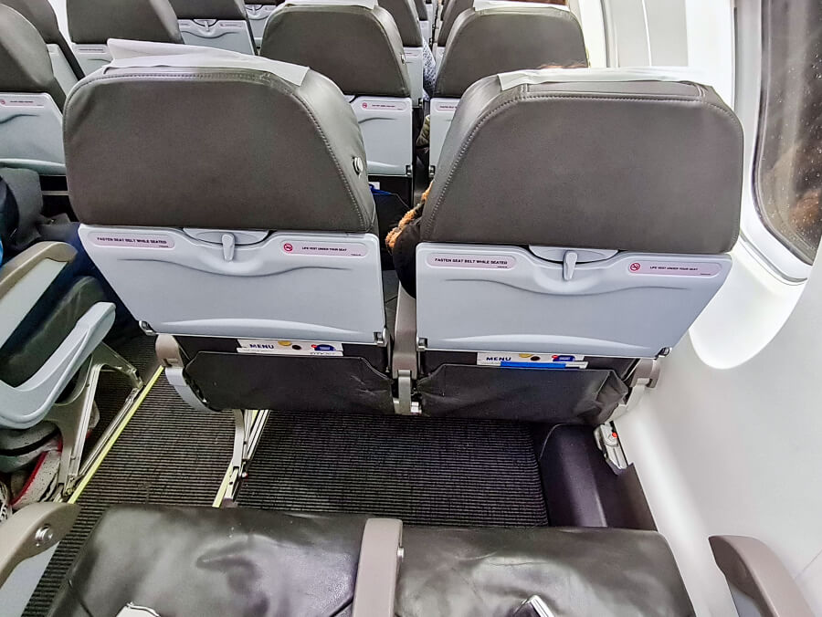 Die Beinfreiheit in Reihe 20 war angenehm und die Aussicht aus dem besser einsehbaren Fenster war gut. Der ausklappbare Tisch konnte nicht verschoben werden und war etwas kleiner als im vorherigen Flugzeug. Dafür gab es an jedem Sitz eine USB-Lademöglichkeiten, die bei Erreichen der Flughöhe aktiviert wurde.