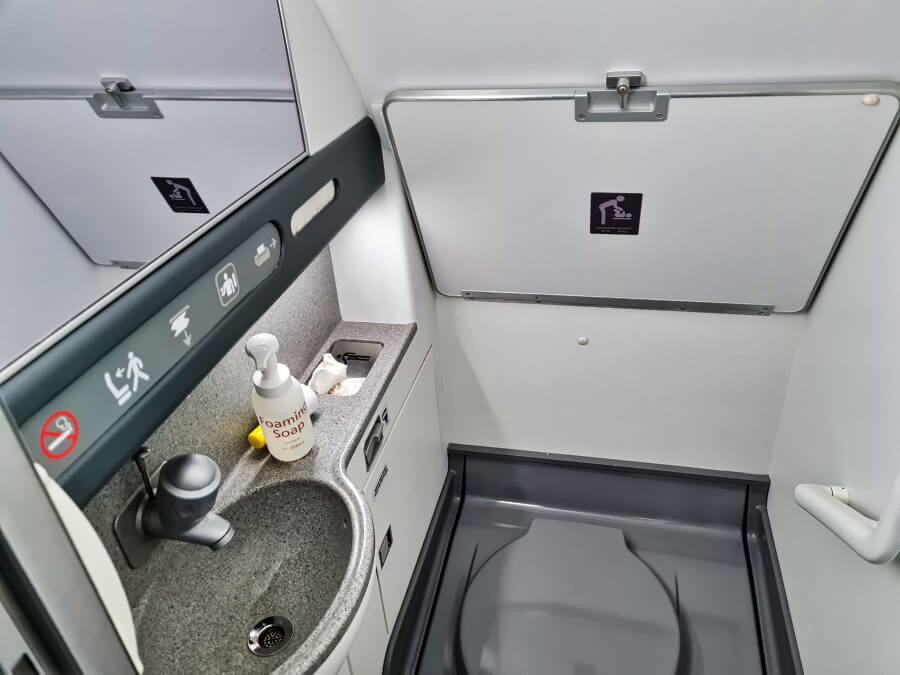 Ich freute mich über eine komplette Reihe für mich und auch die Sauberkeit in der Kabine war in Ordnung. Die Toilettenkabine machte ebenfalls einen sauberen Eindruck.