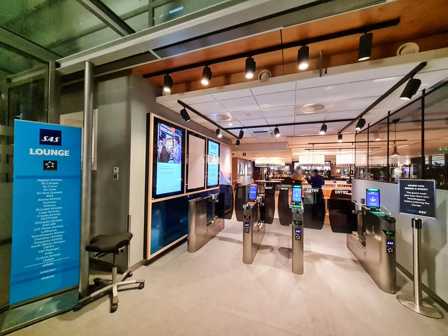 Dahinter beginnt die SAS Lounge, die, wie erwähnt, derzeit nicht geöffnet ist, da es sich aktuell vermutlich nicht lohnt, beide Lounges zu betreiben. Wenn man diese links passiert, kommt eine Station, an der man zu „normalen Zeiten“ wiederum seine Bordkarte scannen muss, um Zutritt zur Gold Lounge zu erhalten. Aktuell ist der Zugang komplett geöffnet.