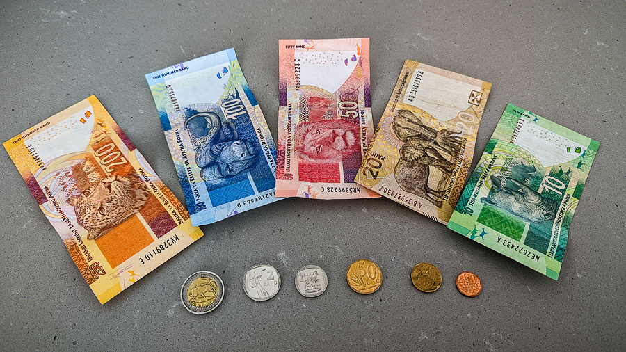 Südafrikanischer Rand (ZAR). 1 € = aktuell ca. 20 Rand