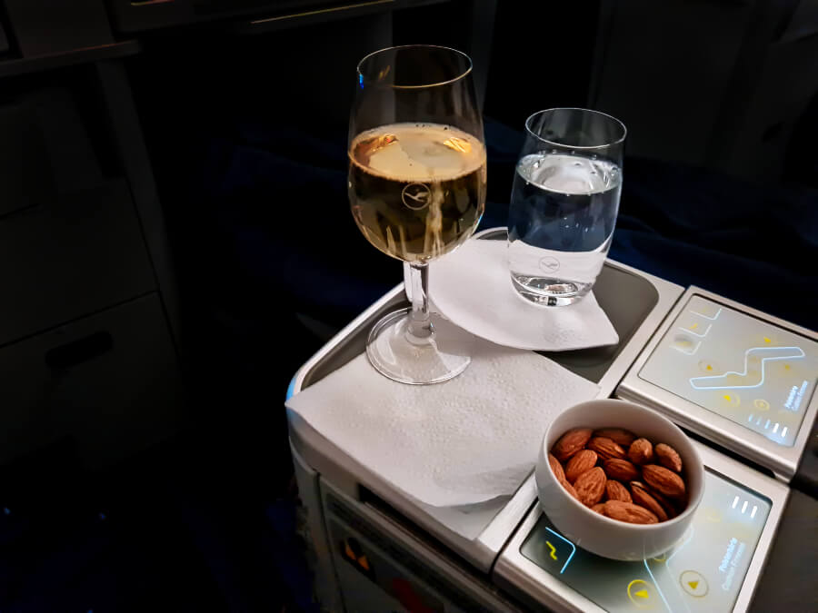 Während des Fluges kannst du es dir in einem geräumigen Sessel mit viel Beinfreiheit richtig gemütlich machen und dich von der Crew verwöhnen lassen. Egal ob alkoholfreie Getränke, Säfte, Wein, Bier, Champagner oder auch Spirituosen – alles ist inklusive. Ein köstliches mehrgängiges Menü, serviert auf edlem Porzellan und mit echtem Besteck, ist genauso selbstverständlich wie kleine Snacks und weitere Leckereien.